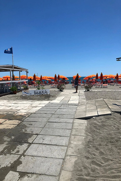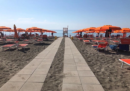A disposizione la SEDIA JOB presso il lido di mare per agevolare la discesa in acqua.