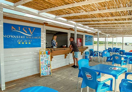 Il Nova Siri Village è separato solo da una fresca pineta dal bellissimo mare con fondale digradante e che ha ottenuto la Bandiera Blu dal 2017 al 2021. Sulla lunga ed ampia spiaggia di sabbia e ciottolini sulla battigia, si trova il lido (illuminato notturno) attrezzato con chiosco bar, bagni, docce, area giochi bimbi ed area sport adulti (beach volley, calcetto e beach tennis), pedalò, canoe e tavola da Sup (Stand up Puddling).