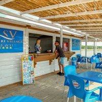 - Open bar dalle 09.00 alle 13.00 e dalle 16.00 alle 19.00 presso il bar piscina e dalle 09.00 alle 19.00 presso il bar in spiaggia, fornitura illimitata dagli erogatori self-service  di acqua liscia e gassata.