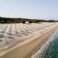 L’ampia spiaggia di sabbia del Nicotera Beach Village è attrezzata con ombrelloni riservati, lettini e docce.