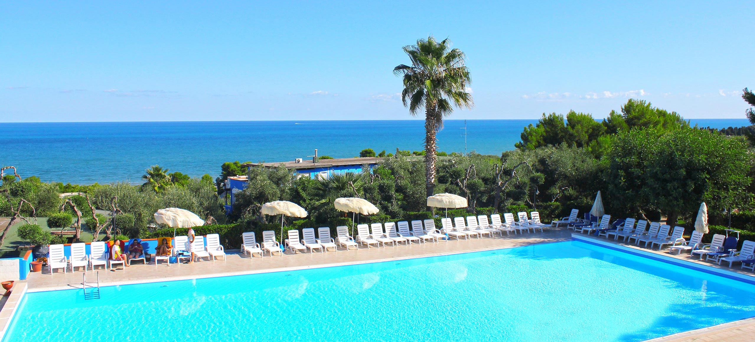 Nel cuore del Villaggio Uliveto è situata la grande piscina panoramica semi olimpionica, vista mare e  circondata da lettini e ombrelloni, con docce a disposizione di tutti gli ospiti. Con fondale piacevolmente digradante è l’ideale per ospiti di tutte le età e con diverse esigenze. Su di essa, in un’ampia piazzetta panoramica, si affaccia il nostro pool bar, il luogo ideale in cui rigenerarsi con una piacevole bevanda rinfrescante in compagnia, magari usufruendo del soft all inclusive compreso nei pacchetti premium e gold.