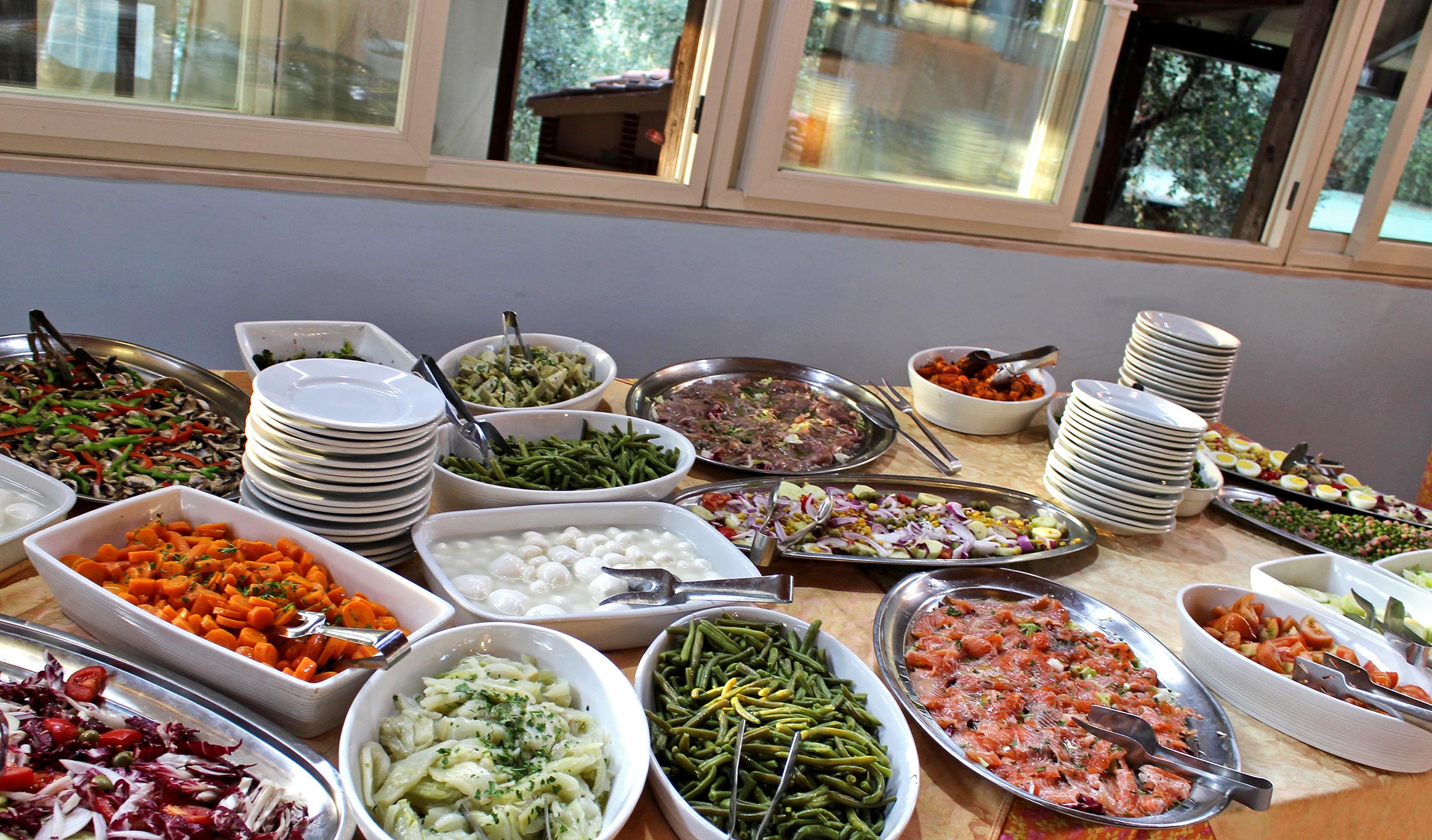 A pranzo e a cena i nostri Chef propongono sapori autentici, tipici della cucina mediterranea, serviti su vasti buffet con due primi e due secondi di carne e pesce accompagnati da un ricco buffet di antipasti e contorni caldi e freddi, oltre una scelta di frutta fresca stagionale.