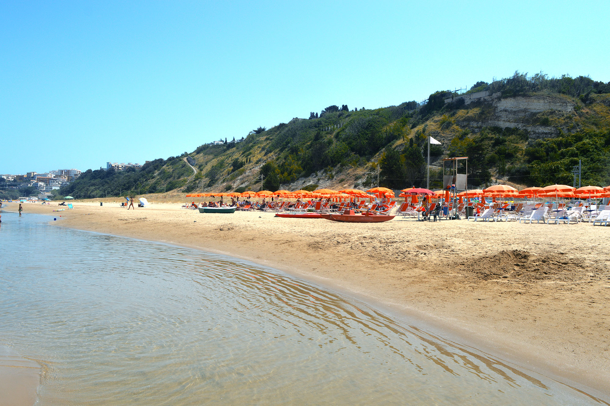 La spiaggia, caratterizzata dalla classica ampiezza della costa adriatica, si fa strada su una vasta distesa di sabbia finissima e dorata, con fondali marini (completamente sabbiosi) digrandanti lentamente in profondità.