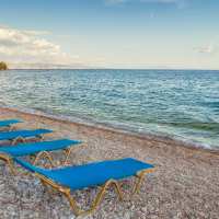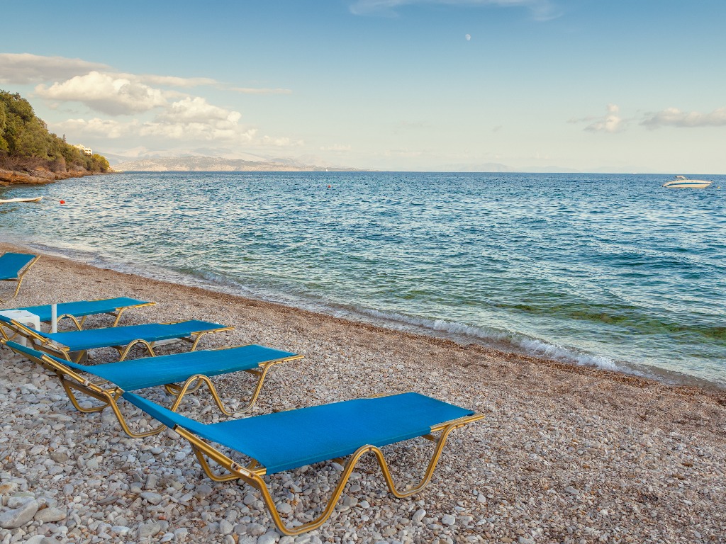 La spiaggia di Ipsos è lunga e stretta con piccoli ciottoli e circondata dalle verdi montagne di Corfù e dista solo 150 metri dagli appartamenti; è attrezzata con ombrelloni, lettini e giochi d'acqua